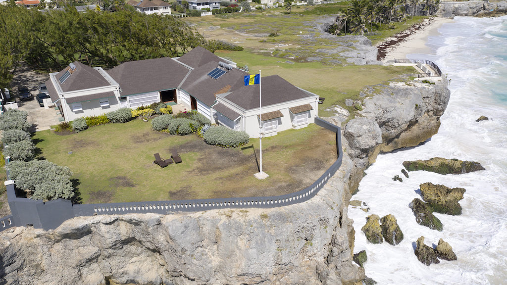 Beachy Head is a charming, unique 5.5 acre oceanfront private estate sitting on a cliffside above a secluded beach on the southeastern Atlantic coast of Barbados, with a villa and cottage on the property. Located in a quiet, residential area, the expansive grounds are enclosed with a driveway lined with Casuarina trees and access to the beach below through steps in the cliff.