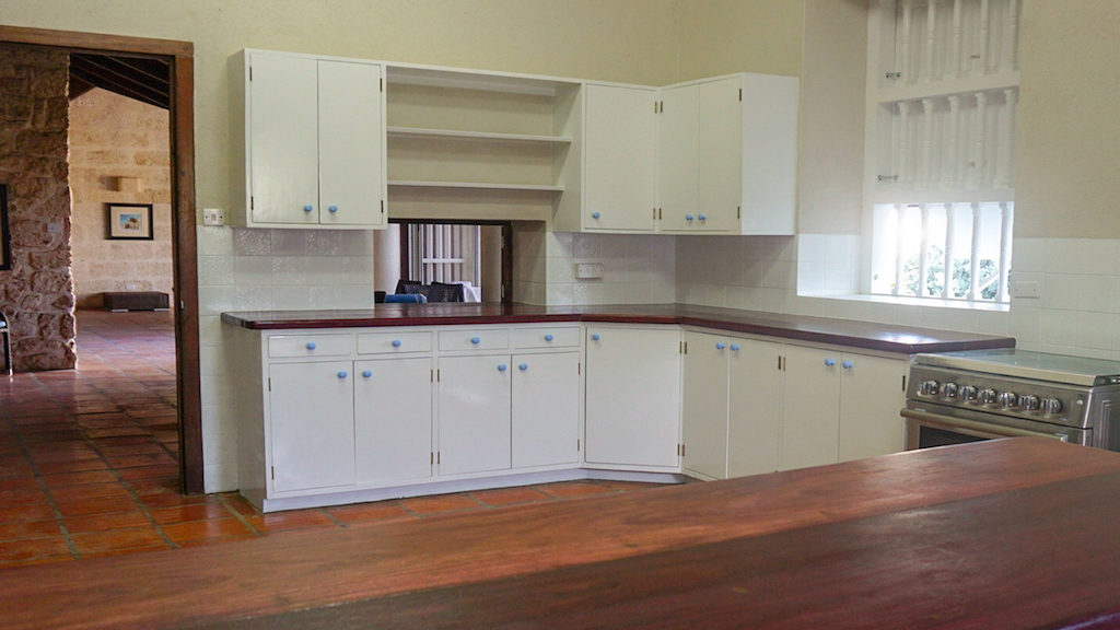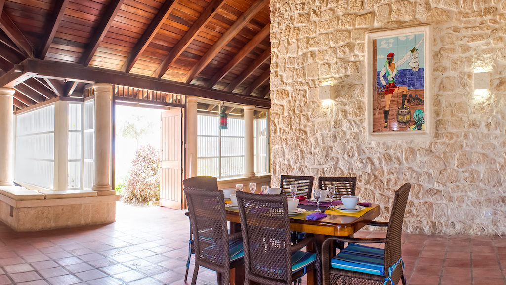 The Villa at Beachy Head is extremely spacious and airy, with thick coral stone walls and high ceilings; double doors throughout the living and dining areas open up the villa to the cooling breeze of the trade winds. The living room opens out to the lawn and a deck on the cliff edge with stunning views over the ocean and beach below; the main dining area is at the centre of the Villa and opens out to a portico on one side and the gardens & ocean views on the other.
