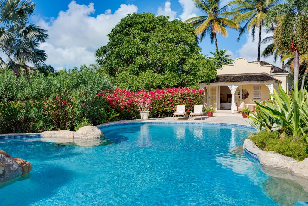 As you step into Calliaqua, you are immediately captivated by its soaring ceilings and the refined elegance of the entry and living areas, with coral-rendered walls and gleaming marble floors setting a tone of sophisticated luxury. The living area flows seamlessly onto a spacious covered terrace, furnished with inviting sofas and a stunning coral stone dining table, perfect for alfresco dining and gathering with loved ones. From here, youโre just steps away from the villaโs sparkling pool, which is surrounded by a sun-drenched deck and vibrant tropical gardens. At one end of the pool deck is an enchanting guest cottage with a private ensuite, while a charming gazebo sits at the other end, ideal for relaxing and enjoying the warm breeze.