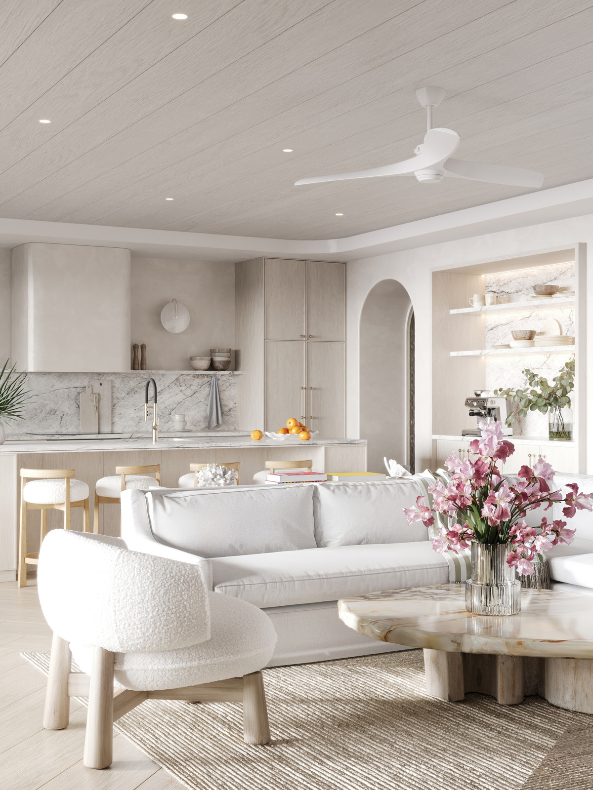 Inspired by the natural beauty of the ocean, each Grove Group residence showcases innovative craftsmanship, exquisite interiors, and lush outdoor spaces with expansive views of the Caribbeanโs Western Sea. Every condo features three private balconies that capture breathtaking sunsets and the serene rhythm of island life.