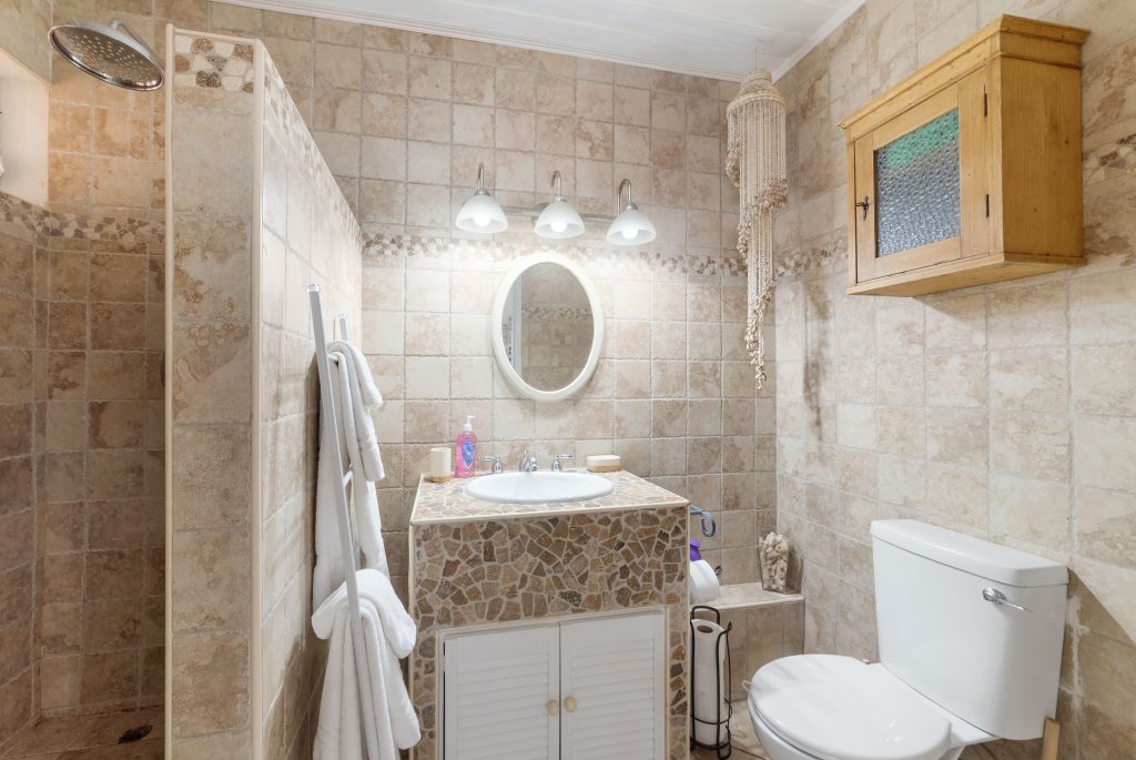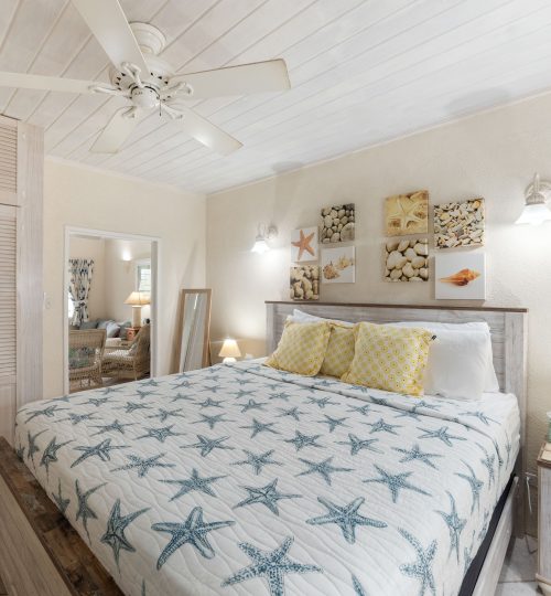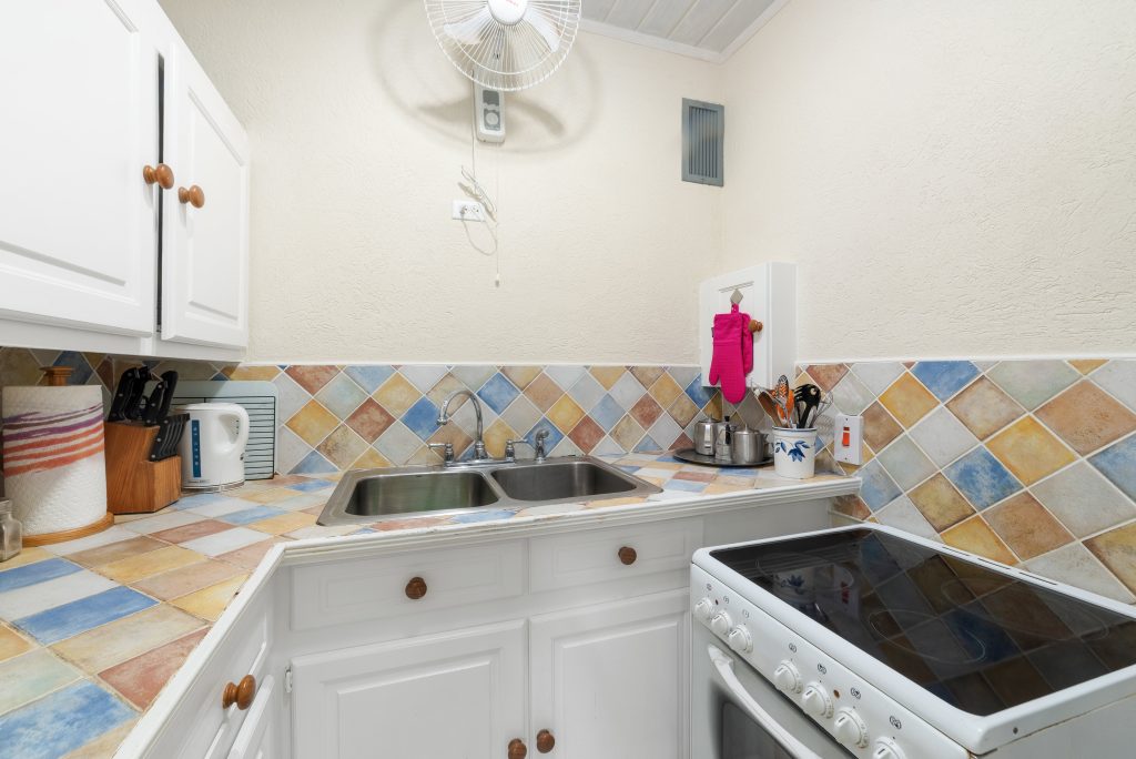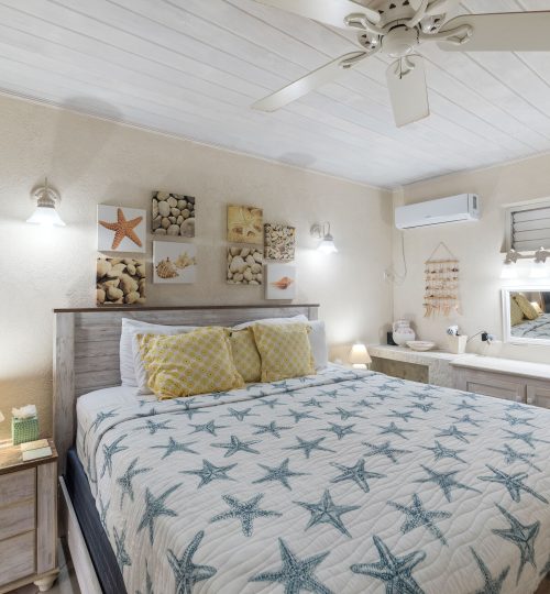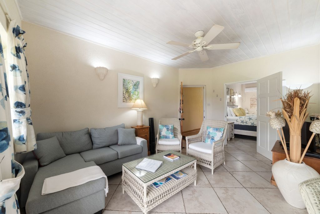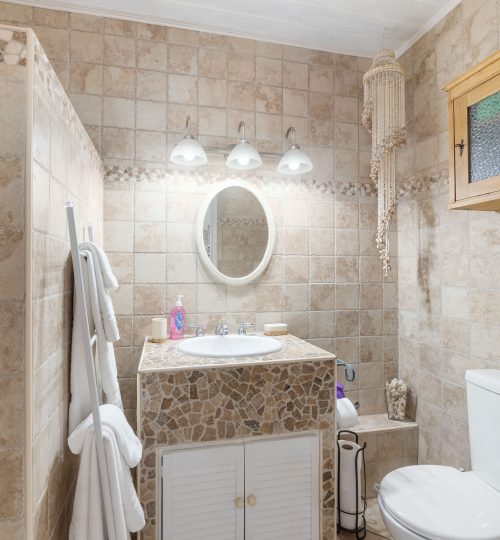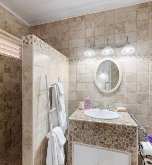 The bedroom is a tranquil haven featuring a plush bed and plenty storage space. There is an en-suite bathroom for a nice shower after a lovely day exploring beautiful Barbados.