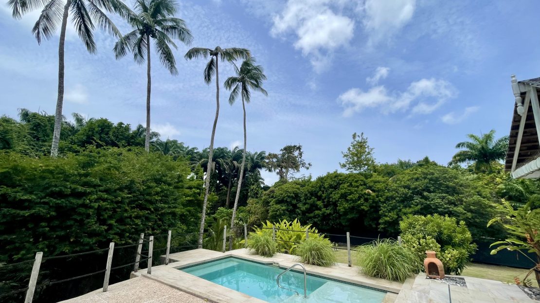 Palm View is a one-of-a-kind opportunity to live, vacation at or use for investment purposes. Completing this wonderful property is the salt water pool with gazebo and large surrounding deck โ ideal for an afternoon cocktail. The beautiful grounds are on two levels, with coral-stone steps leading to two secluded seating areas within the forest canopy.