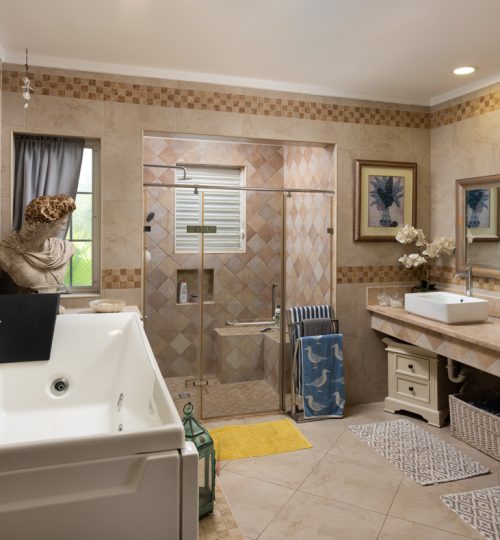 Mariposa features three generously sized bedrooms with ample closet space. Two of the guest bedrooms are connected via a Jack and Jill bathroom, while the master suite is a true retreat. It boasts a spacious walk-in closet and a luxurious en-suite bathroom complete with double vanity, jet-equipped bathtub, and separate shower. One of the standout elements of this property is the covered outdoor entertainment area just off the kitchen, perfect for entertaining and relaxing. This space opens onto a stunning pool and sun deck all surrounded by a lush gully backdrop.