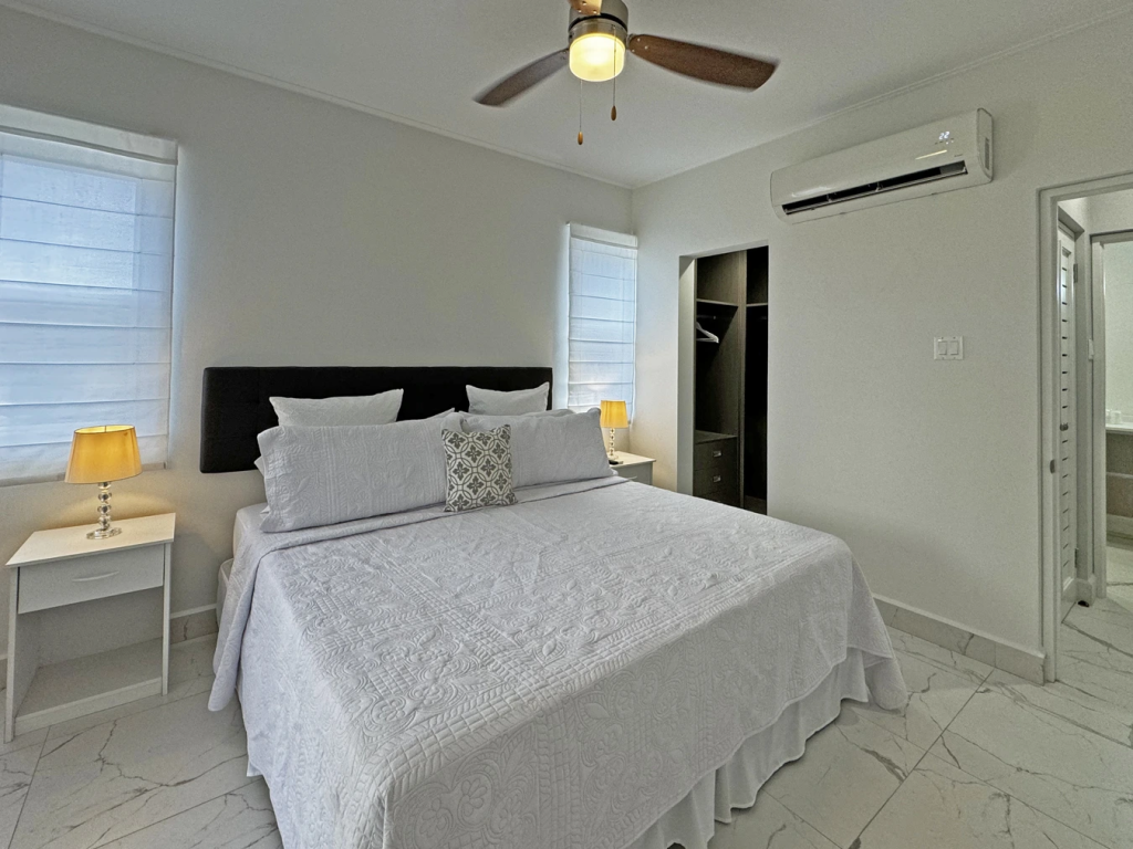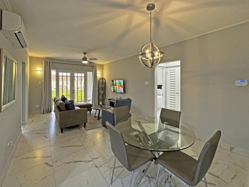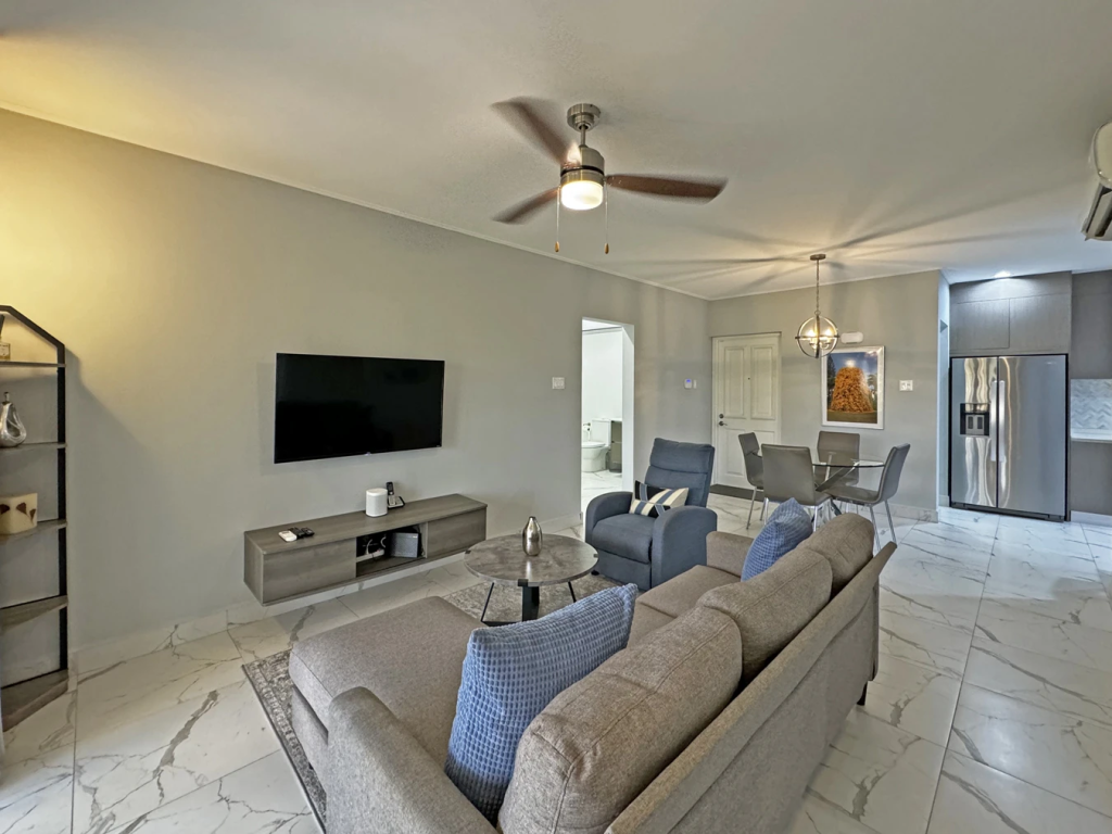 These spacious, open-plan apartments come complete with several luxuries including porcelain floor tiles throughout, custom-built modern kitchens with Quartz counter-tops and stainless steel, energy efficient appliances. Both bedrooms are fitted with a custom-built walk-in closets and energy-efficient inverter air-conditioners. Each apartment is furnished with a modern, contemporary look which will appeal to both a mature and younger clientele. The rate is inclusive of all utilities with a cap on electricity at BDS $300 per month.