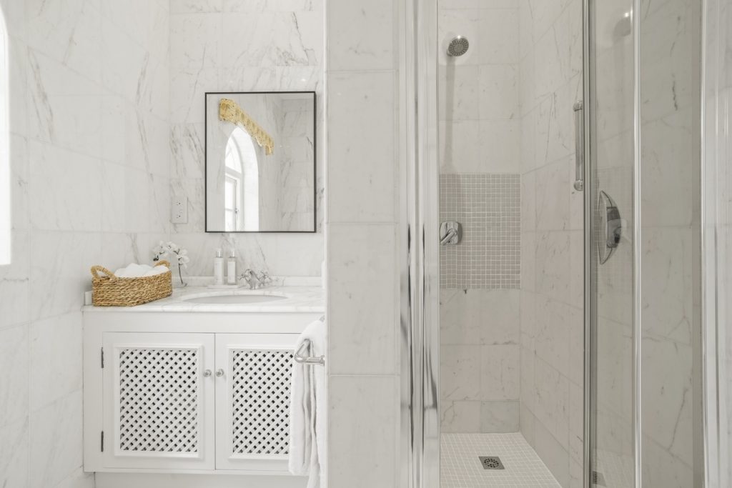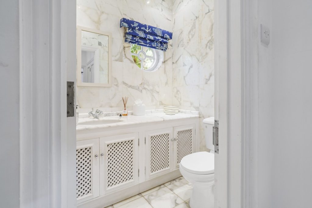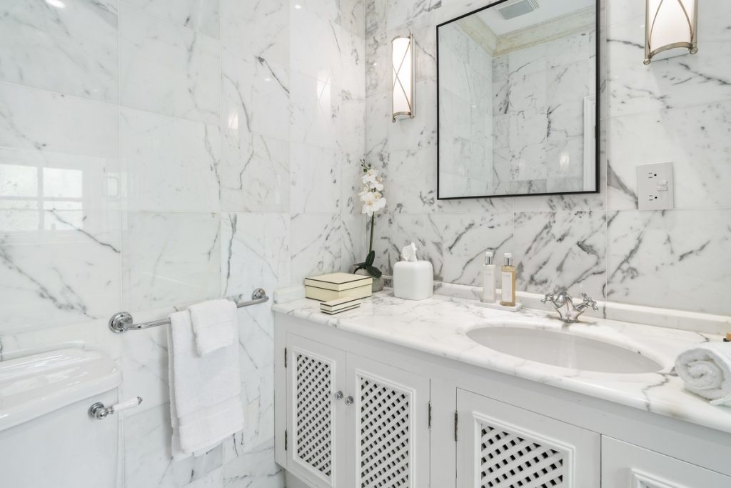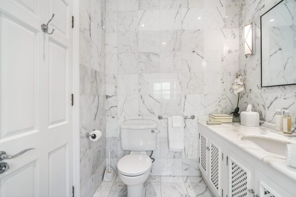 Each bathroom is finished in luxurious white marble with stylish fittings and soft lighting, creating a spa-like atmosphere.