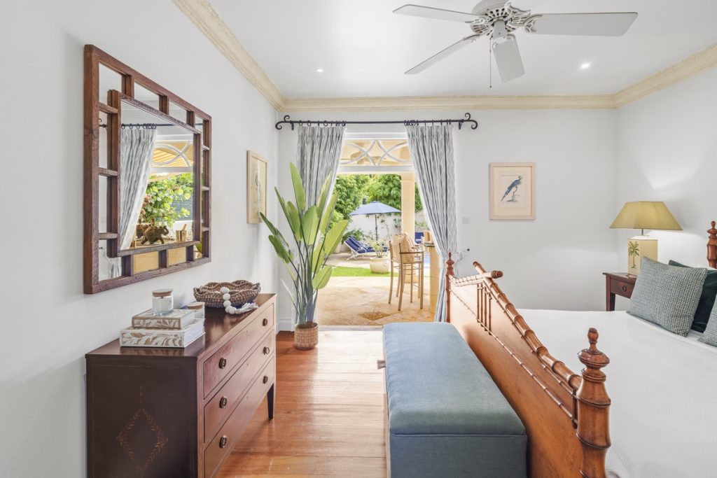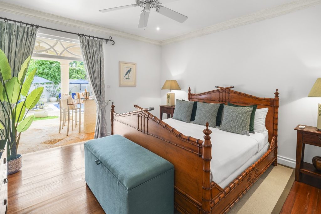 Guest Bedroom 2: A charming retreat with a king bed, tropical garden views, and access to the pool terrace.