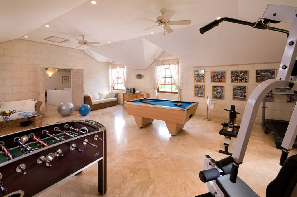 There are enough amenities on this estate that youโll feel like youโre on a private resort. Unwind on one of the lounge chairs on the sun deck, and if you need to cool down, go for a refreshing swim in the pool. The homeโs multi-level terraces also offer respite from the sun; on the lower level youโll find a casual outdoor living and dining area. Kids and the young at heart will appreciate the games room that boasts both a pool table and foosball; this room also doubles as a well-equipped gym.