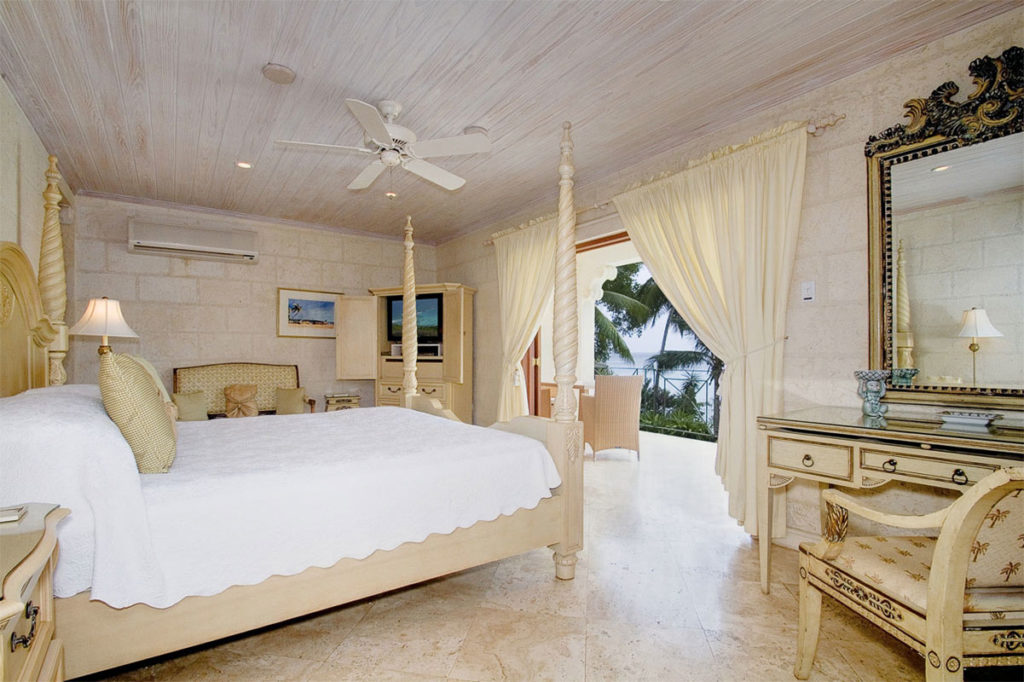This villaโs five bedrooms can accommodate up to 10 guests. Each suite is similar in size and features, making it a perfect getaway for a group of friends. All rooms offer air conditioning, a private en-suite bathroom, satellite TV, separate dressing room, a walk-in power shower and a king size bed. Four of the rooms are located upstairs, and include private balconies overlooking the sea.