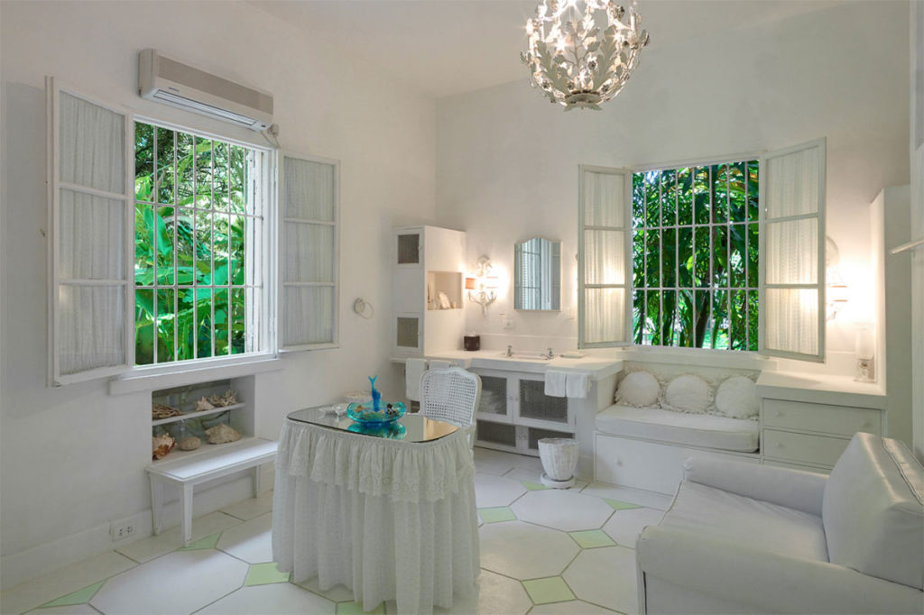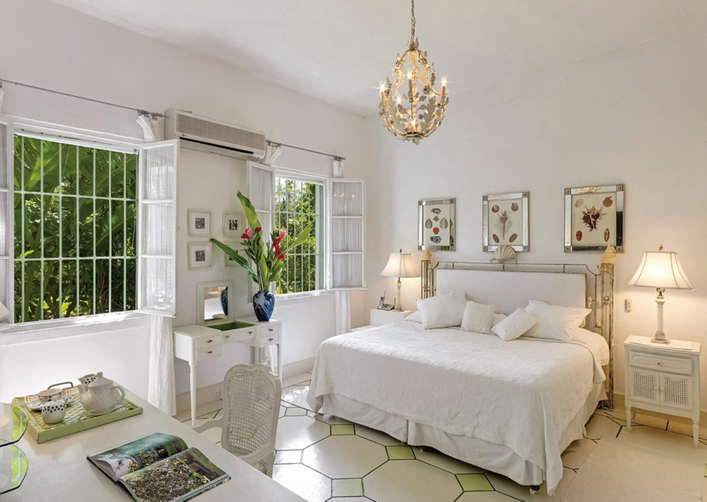 Built in the โ€˜60s, this Colonial-style home is constructed of coral stone and boasts a spacious interior decorated with antiques and artwork that includes a collection of Haitian paintings. The airy living room features mainly white furnishings, soaring 14-foot ceilings and walks directly out onto the terrace. You wonโ€™t need to lift a finger during your stay, let the villaโ€™s chef take care of the meals and the housekeeping staff ensure the place stays tidy.