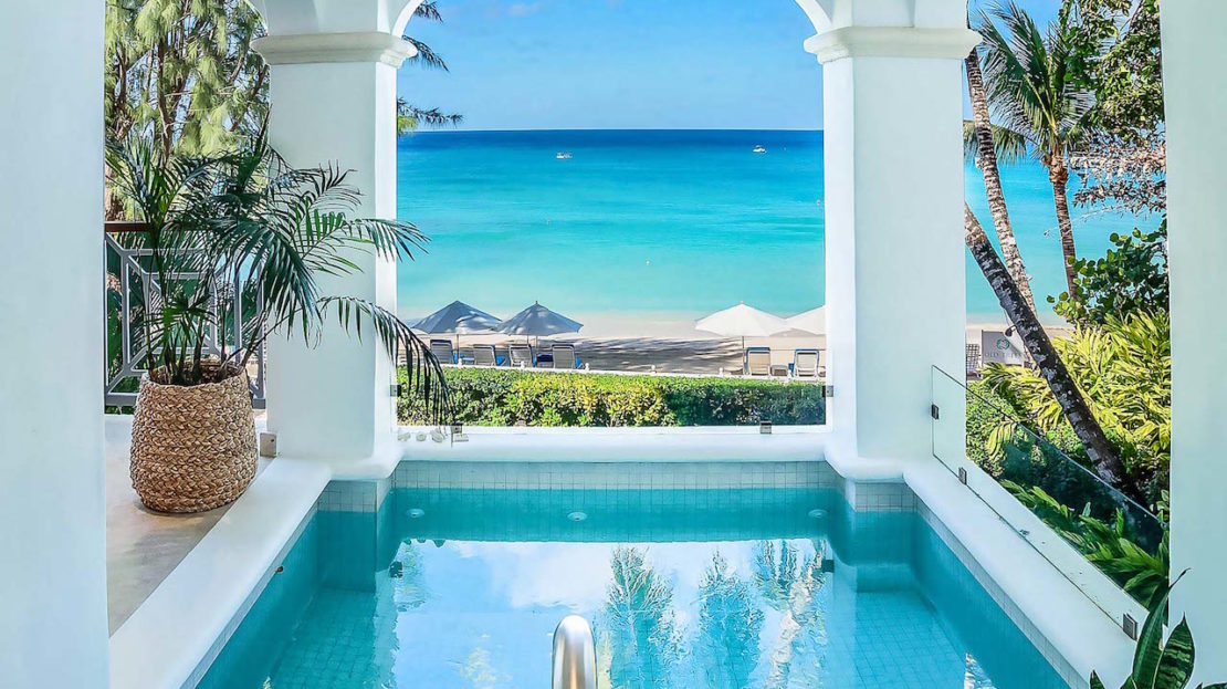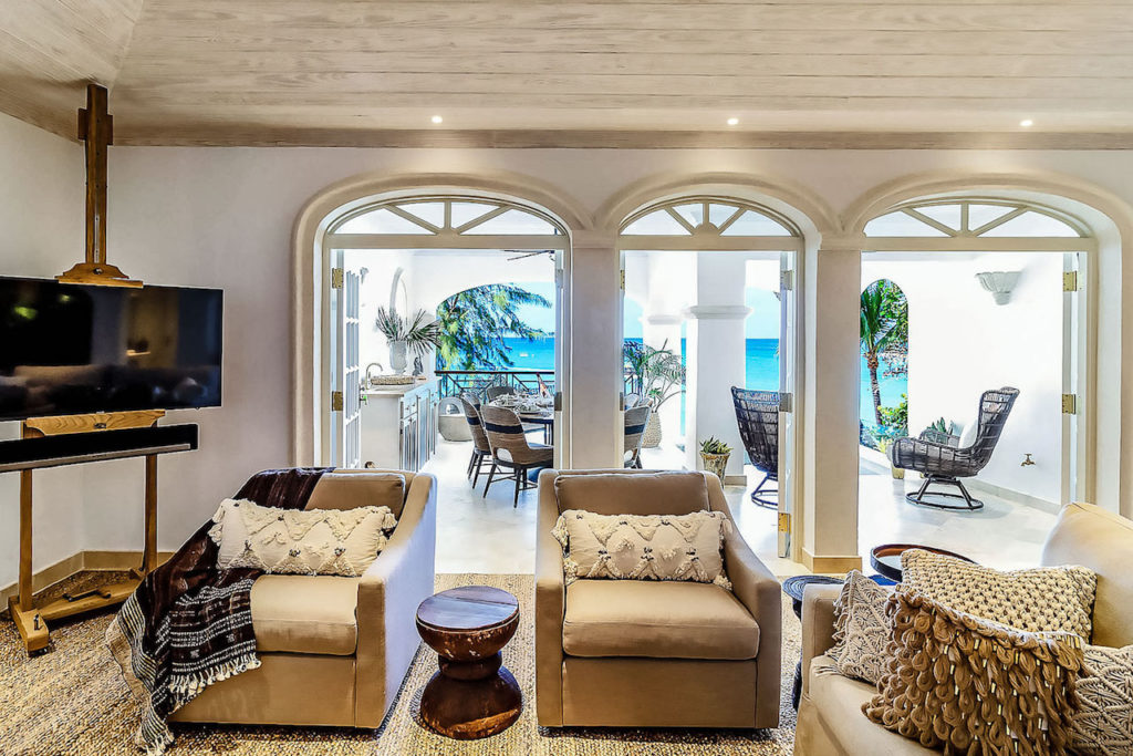 Sunset 104, a chic and elegant beachfront apartment on the famous Paynes Bay beach on the West Coast of Barbados. This lateral first-floor villa comprises of a spacious living room, modern kitchen, outdoor terrace with dining area and plunge pool and 3 bedrooms each with an en-suite bathroom. The master benefits from a private balcony overlooking the stunning bay. Having recently undergone an extensive re-fit, Sunset 104 offers luxury beach living with contemporary interiors that have high-quality natural earth tone finishes, brand new bathrooms, and a new kitchen. It also benefits from being a corner unit giving you plenty of natural light.