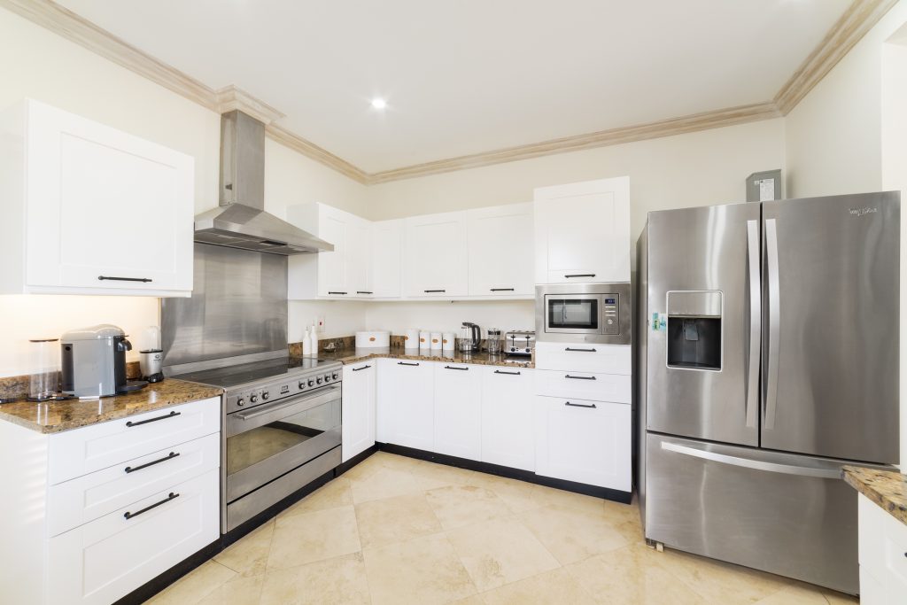 With a popular โreverse livingโ design, the villa is setup with the open plan living, dining and kitchen areas on the upper level, taking full advantage of natural light and breezes and opening on to a beautiful patio. The 5th bedroom โ presently a convenient little nook/study โ is also on this level.