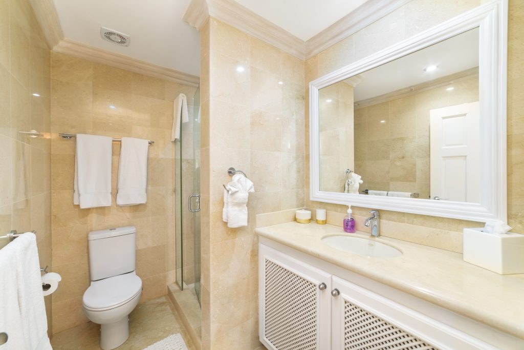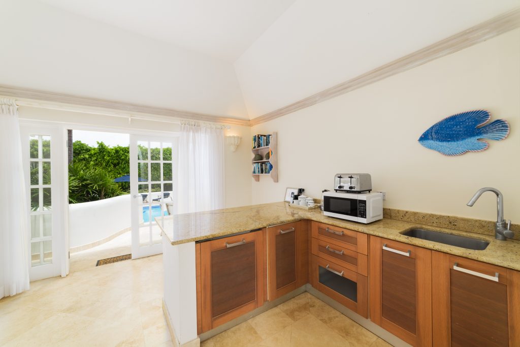 The master bedroom and one guest room are on the lower level and both lead on to a covered terrace and to the pool deck beyond. The spacious master room is en-suite with a fantastic walk in closet. The other two guest rooms are in the cottage, easily accessed from either the pool deck or by private path from the parking area. The cottage is self-sufficient with its own kitchen and lounge area.