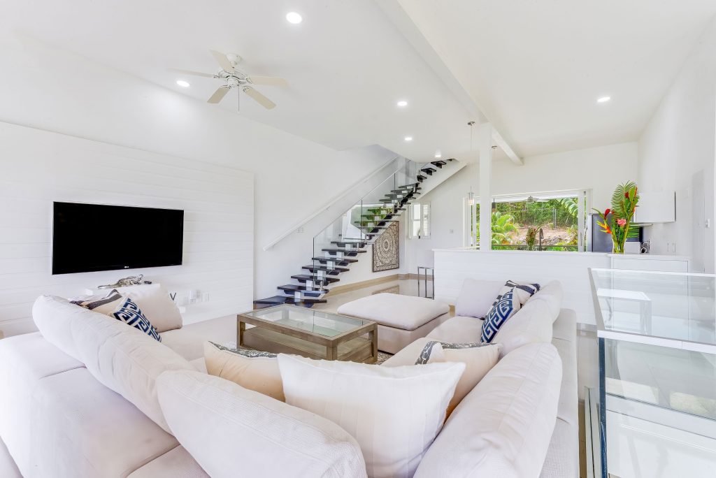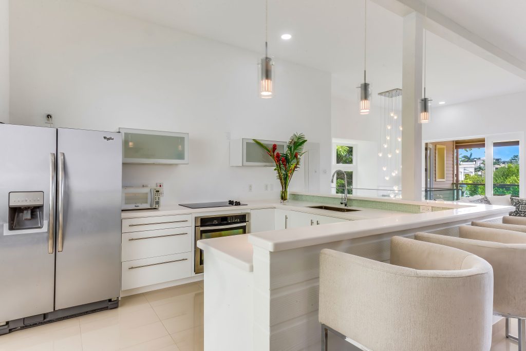 On the Western terrace which leads out from the living room area, a view of Barbadosโs beautiful sunsets can be admired every evening of your choice. The Eastern terrace, which features a dinning room table; leads out from the kitchen and overlooks the villaโs pool and lush gardens. The Grove Hillside Villa 1 is an oasis ideally located within the Limegrove complex just minutes from retail shopping, banking services, health and wellness facilities, restaurants and beaches. Come and enjoy a modern home on the Platinum Coast of Barbados!