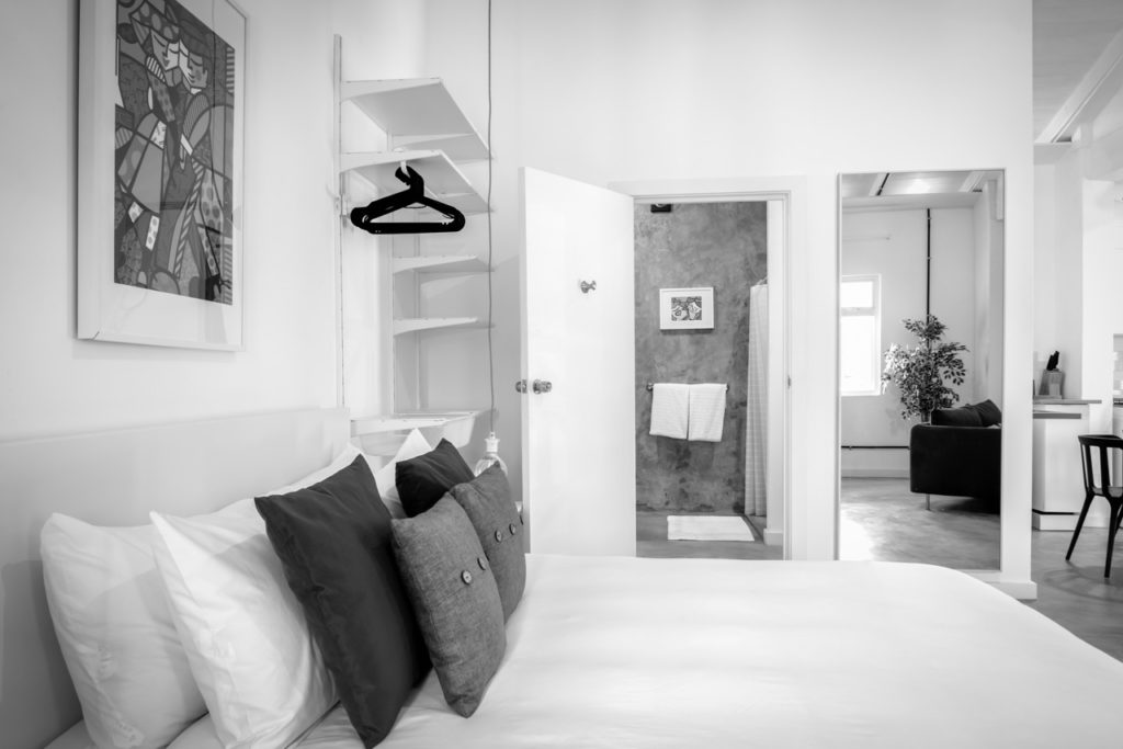 All the apartments at The Moorings are decorated in similar fashion. ย The polished concrete floors and wet bathroom add a mix of loft style with casual chic living. ย The space is well laid out and suitable for a couple or a single traveler looking for a budget-friendly stay right on the beach.