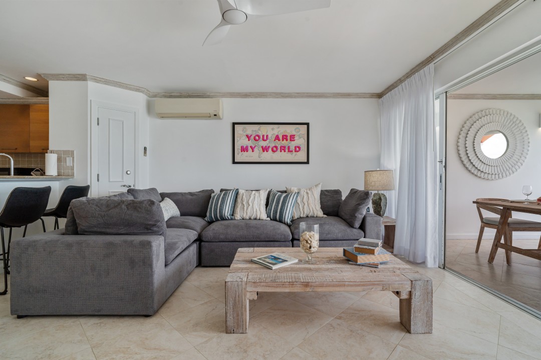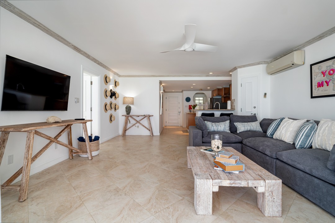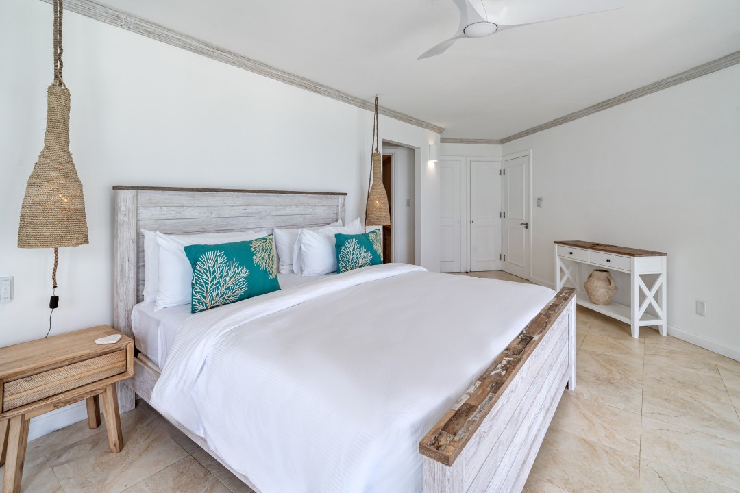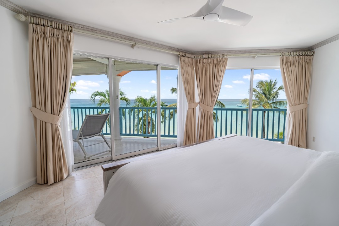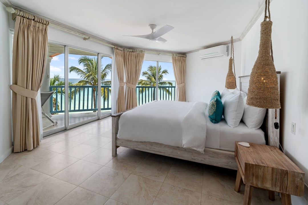 Apartment 304 sits on the second floor and boasts breathtaking views of the crystal-clear Caribbean Sea from its private patio. This stylish, fully refurbished two-bedroom, two-bathroom villa features air-conditioned living spaces and ceiling fans throughout for your comfort. The master bedroom is positioned to make the most of the ocean views โ imagine waking up to the sound of waves each morning. Both bedrooms are en suite, offering convenience and privacy.