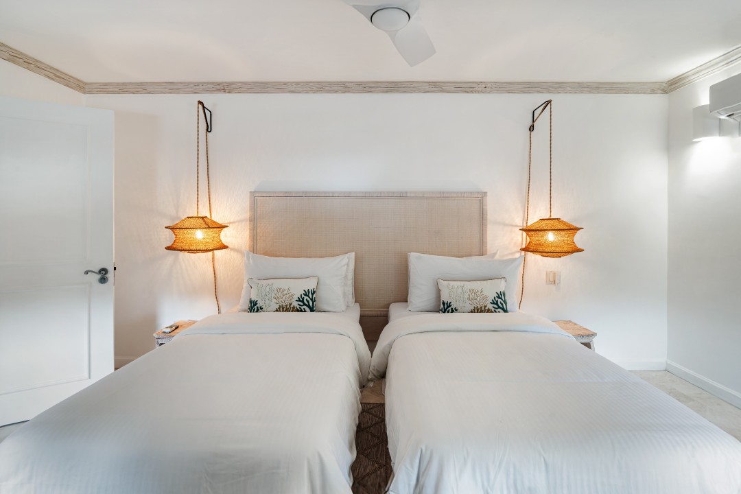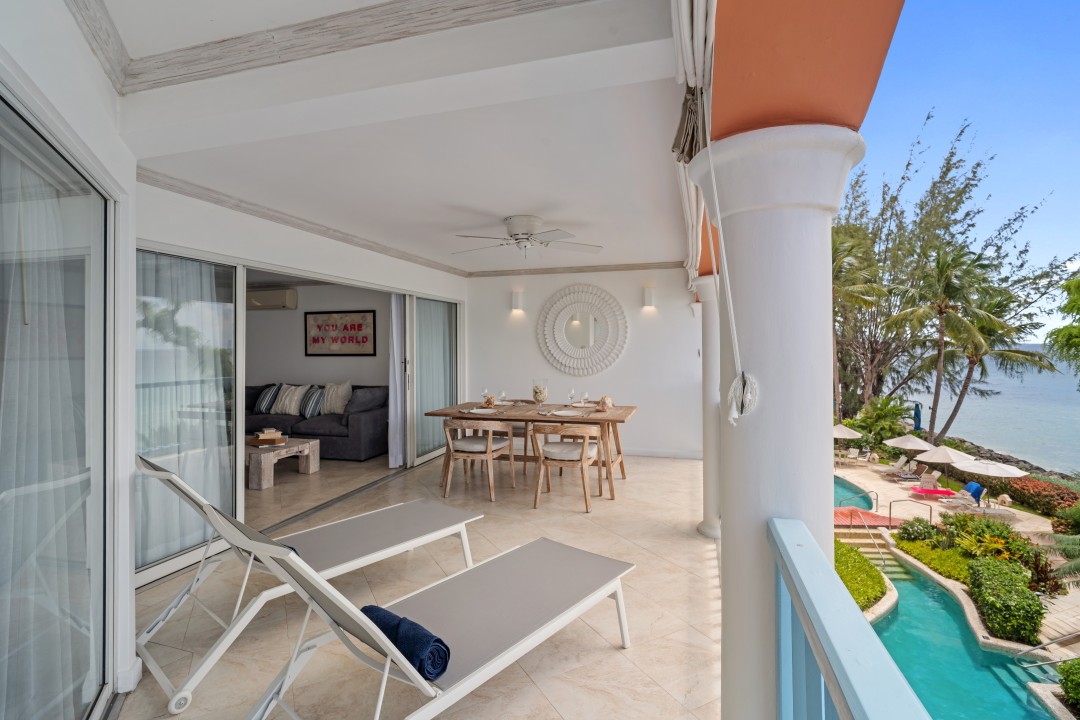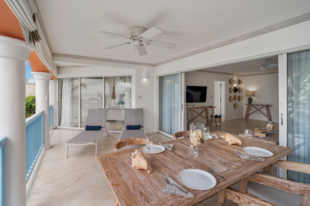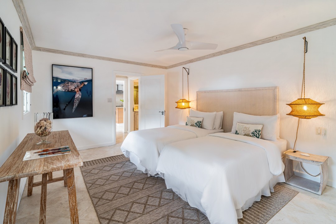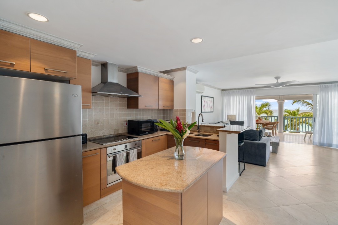 Apartment 304 sits on the second floor and boasts breathtaking views of the crystal-clear Caribbean Sea from its private patio. This stylish, fully refurbished two-bedroom, two-bathroom villa features air-conditioned living spaces and ceiling fans throughout for your comfort. The master bedroom is positioned to make the most of the ocean views โ imagine waking up to the sound of waves each morning. Both bedrooms are en suite, offering convenience and privacy.