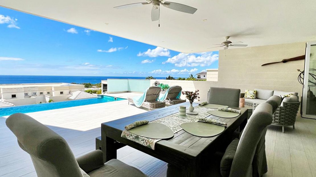 Perched atop the first and highest ridge in the esteemed Westmoreland Hills community, this enchanting semi-detached townhouse provides a sanctuary of tranquility paired with awe-inspiring panoramic seaviews of the West Coast. Featuring 4 bedrooms and 4 bathrooms spread across a generous 3,600 square feet, this residence epitomizes luxurious Caribbean living. The main level offers an open-concept living space, outdoor dining, lounging, and pool area, perfect for entertaining or intimate family gatherings with a stunning sea view. The well-appointed kitchen boasts modern style with stainless steel appliances and sleek cabinetry. The former office space has been transformed into a convenient laundry room, adding practicality to daily living. The basement room currently serves as a versatile storage area, accommodating patio furniture and other essentials when not in use. The top floor houses the main suite, exuding luxury with a sumptuous ensuite bathroom, walk-in closet area, and captivating ocean views that provide a serene backdrop for relaxation. Two other en suite bedrooms on this level, one of which shares in the beautiful ocean views. The fourth bedroom is located on the entrance level. This exquisite residence is offered fully furnished, providing an effortless transition for those seeking immediate occupancy. Meticulously maintained and never rented, the property stands as a testament to pride of ownership and impeccable care. Outside, the allure of the Caribbean lifestyle beckons, with lush surroundings and magnificent sea views serving as the perfect backdrop for outdoor living. A large community swimming pool and fully equipped gym on the premises cater to all owners and tenants. Situated within the gated confines of Westmoreland Hills, opposite the renowned Royal Westmoreland, residents enjoy peace of mind and exclusivity in equal measure.